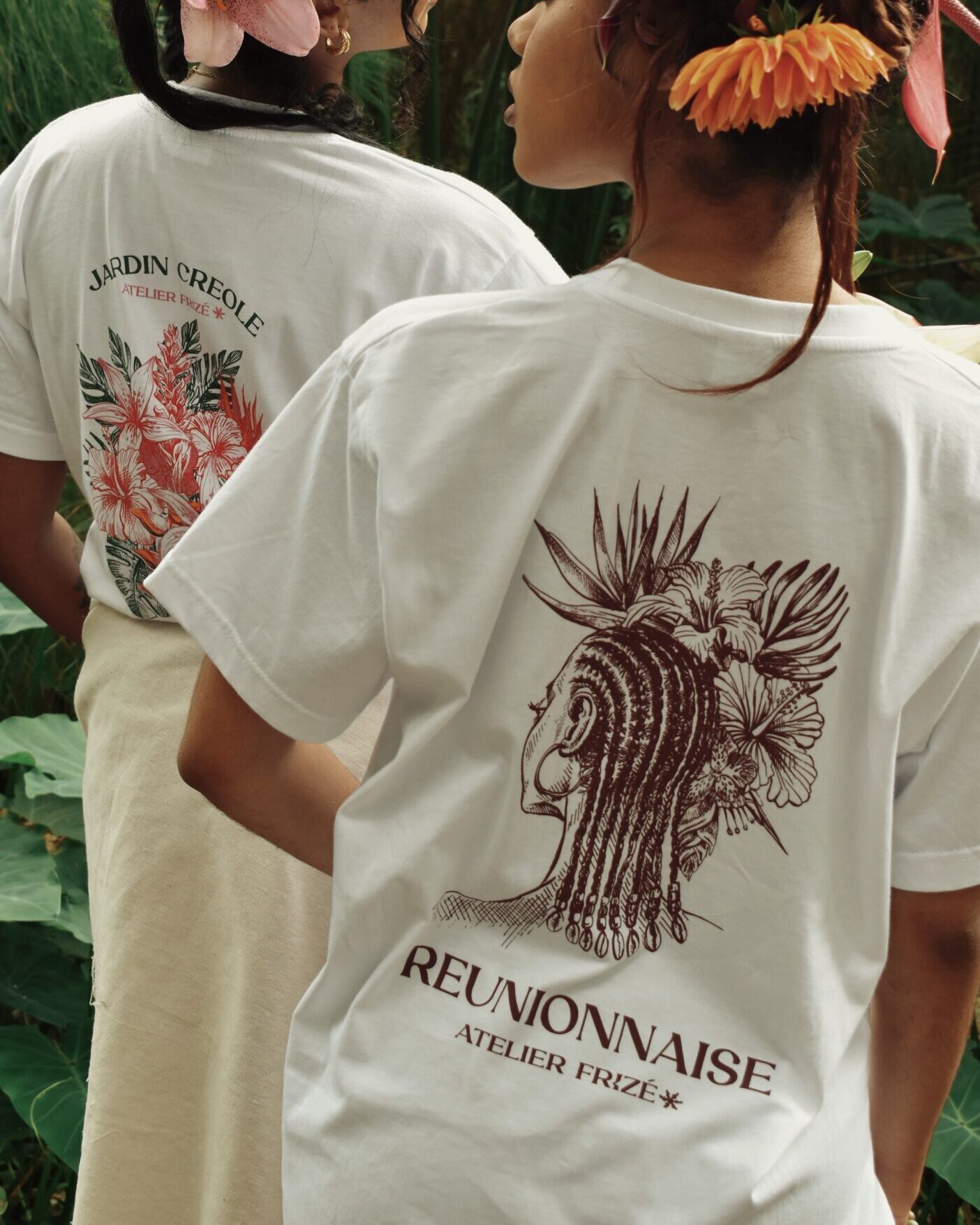 Chaque modèle est imprimé en sérigraphie avec une illustration originale inspirée par la culture réunionnaise.